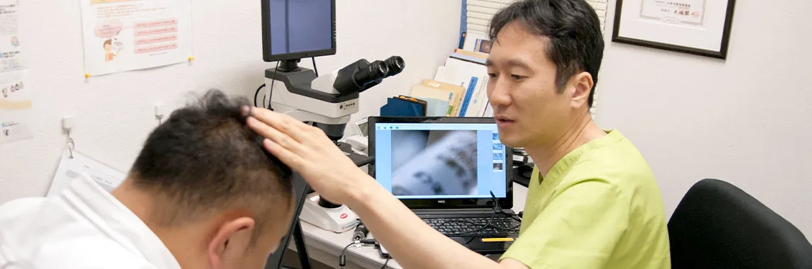 毛髪診断士による丁寧なカウンセリングを行います。抜け毛が気になる方、周りの人から薄毛と指摘された方など、髪に関する悩みをお持ちの方はお気軽にご相談ください。カウンセリングを通して、あなたに適した治療法やアドバイスをいたします。※当院では無理な勧誘は一切していません。